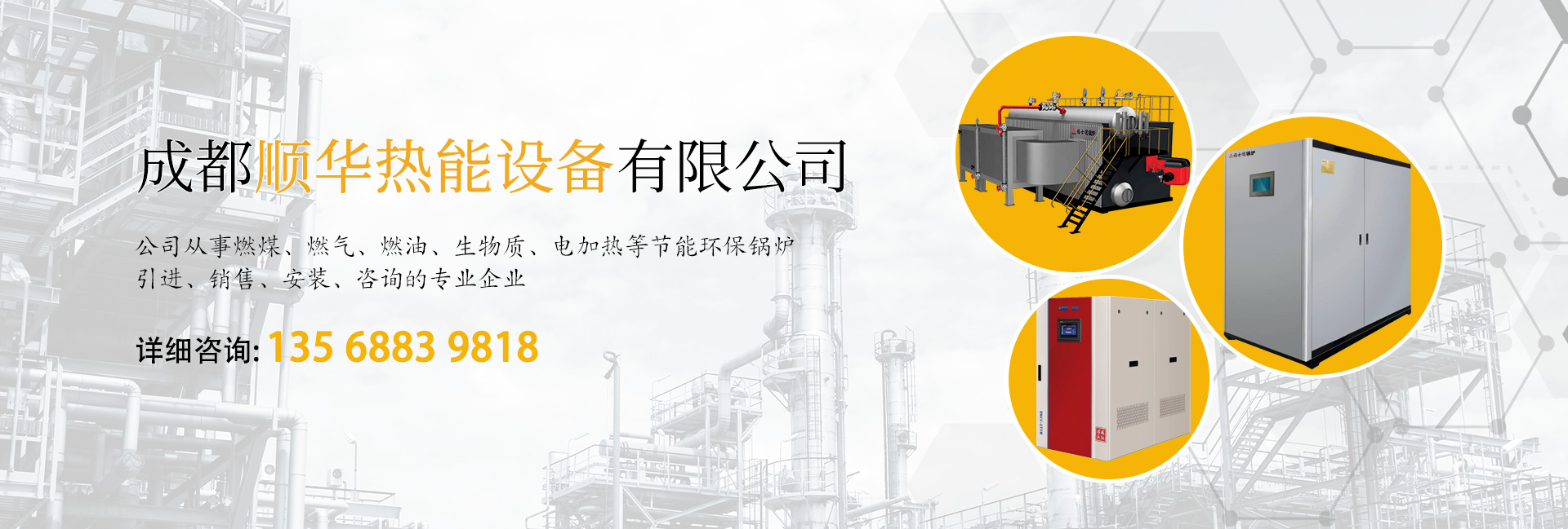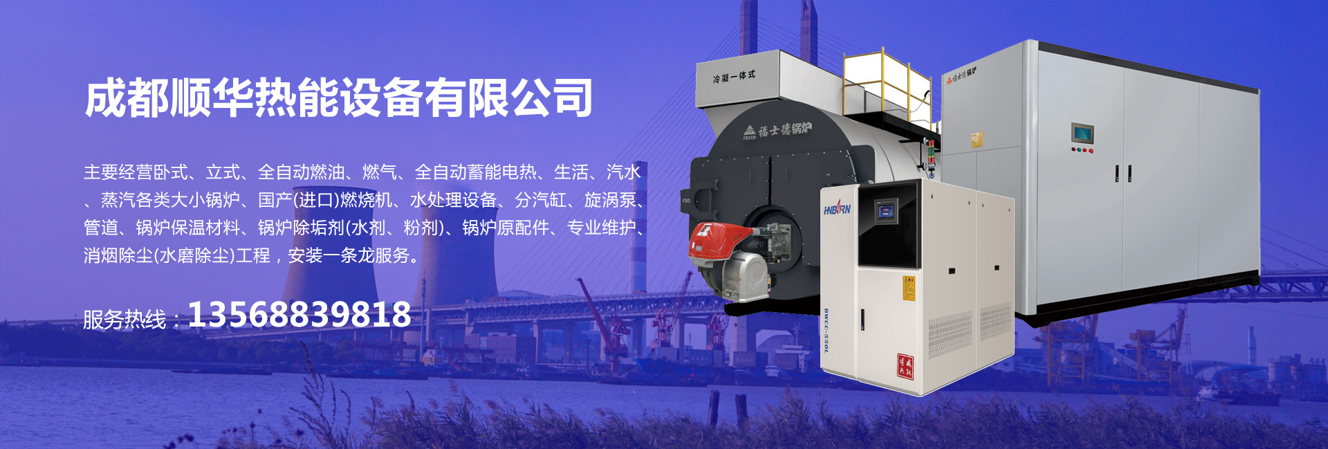 成都順華熱能設(shè)備有限公司是一家從事燃煤、燃?xì)狻⑷加汀⑸镔|(zhì)、電加熱等節(jié)能環(huán)保鍋爐引進(jìn)、銷售、安裝、咨詢的專業(yè)企業(yè).公司技術(shù)力量雄厚,具有較強(qiáng)的自主開(kāi)發(fā)和技術(shù)創(chuàng)新能力,我們堅(jiān)持“誠(chéng)信,服務(wù),用戶致上”的理念宗旨,健全質(zhì)量體系,加強(qiáng)全面質(zhì)量管理,對(duì)產(chǎn)品制造的全過(guò)程進(jìn)行有效控制,率先通過(guò)ISO9001國(guó)際質(zhì)量體系認(rèn)證。主要經(jīng)營(yíng)臥式、立式、全自動(dòng)燃油、燃?xì)狻⑷詣?dòng)蓄能電熱、生活、汽水、蒸汽各類大小鍋爐、國(guó)產(chǎn)(進(jìn)口)燃燒機(jī)、水處理設(shè)備、分汽缸、旋渦泵、管道、鍋爐保溫材料、鍋爐除垢劑(水劑、粉劑)、鍋爐原配件